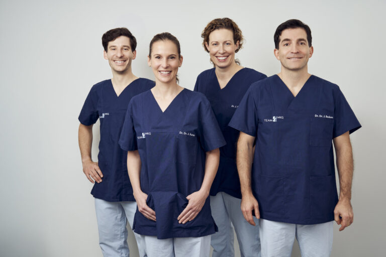 Bevor Ihre individuelle Behandlung in unserer Praxis beginnt, beraten sich unsere Fachärzte ausführlich mit den Kollegen und stimmen den Therapieplan mit allen beteiligten Fachrichtungen detailliert ab. Unsere Kieferchirurgen und Oralchirurgen Dr. Dr. Jens Bodem, Dr. Dr. Julia Kansy, Dr. Julie Rohde und Dr. Korbinian Hoffmann legen großen Wert auf den aktiven Erfahrungsaustausch und eine auf Vertrauen basierende, interdisziplinäre Zusammenarbeit.
